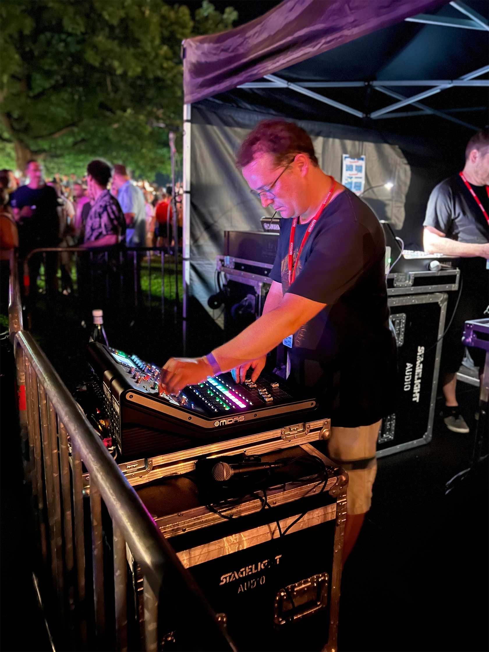 Zu einem guten Konzert gehört ein guter Sound und um diesen zu erreichen braucht es einen kompetenten Techniker. Mir liegt sehr viel daran, dass sich Musiker auf der Bühne wohl fühlen und sich voll und ganz auf ihre Show konzentrieren können, ohne sich um technische Feinheiten Gedanken machen zu müssen. Ich bin mit verschiedenen Konsolen und Anlagen vertraut, arbeite selbst aber vorwiegend mit dem MIDAS M32R.